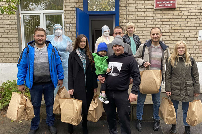 Болеющим детям Донбасса работники стройтреста № 3 и активисты Солигорска собрали пакеты радости и улыбок