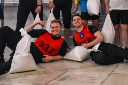 В этом году участвовало в забеге 67 смелых и отважных. Мужчины традиционно бежали с мешком весом 16 кг, а девушки – налегке.