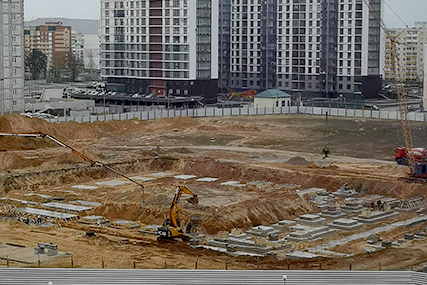 Фото из архива ОАО “Стройтрест №3 Ордена Октябрьской революции”, оцвечено с помощью нейросети