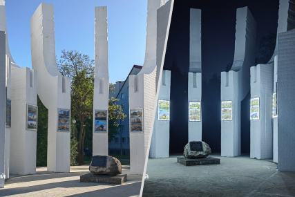 Напомним, композиция представляет собой десять белых бетонных стел, расходящихся в разные стороны. Стелы напоминают бутон цветка, как символ молодости и расцвета Солигорска. На каждой из них установлены мемориальные доски, информация посвящена достижениям ОАО “Стройтрест № 3 Ордена Октябрьской революции”, который занимается строительством и обновлением города.