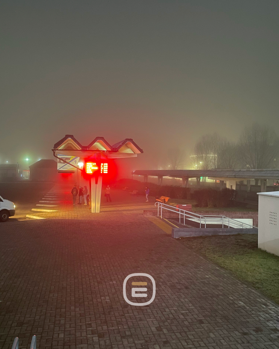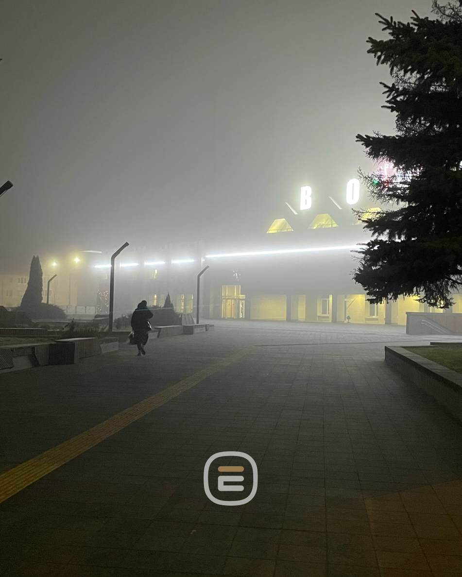В туманной дымке привычные места Солигорска становятся почти неузнаваемыми.