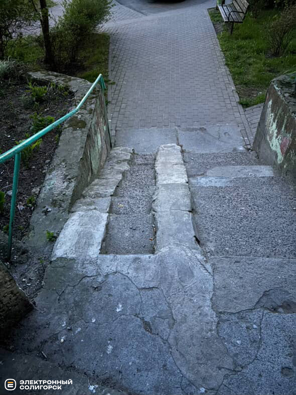 - Здравствуйте. Хочу осветить тему. Это касается не только нашего подъезда, а в целом такая проблема присутствует по всему городу. Октябрьская, 95, подъезд 8. Вечная наша головная боль - пандус. Уже с января жильцы подают заявки на реконструкцию, но всё остаётся без результата. Вся входная группа находится в плачевном состоянии. Мне спуститься с коляской просто травмоопасно в любое время года. Зимой всё превращается каток. Ступени разных размеров, всё скользкое и разбитое, угол наклона пандуса не подходит ни для чего: ни коляску детскую поднять, ни инвалидную.