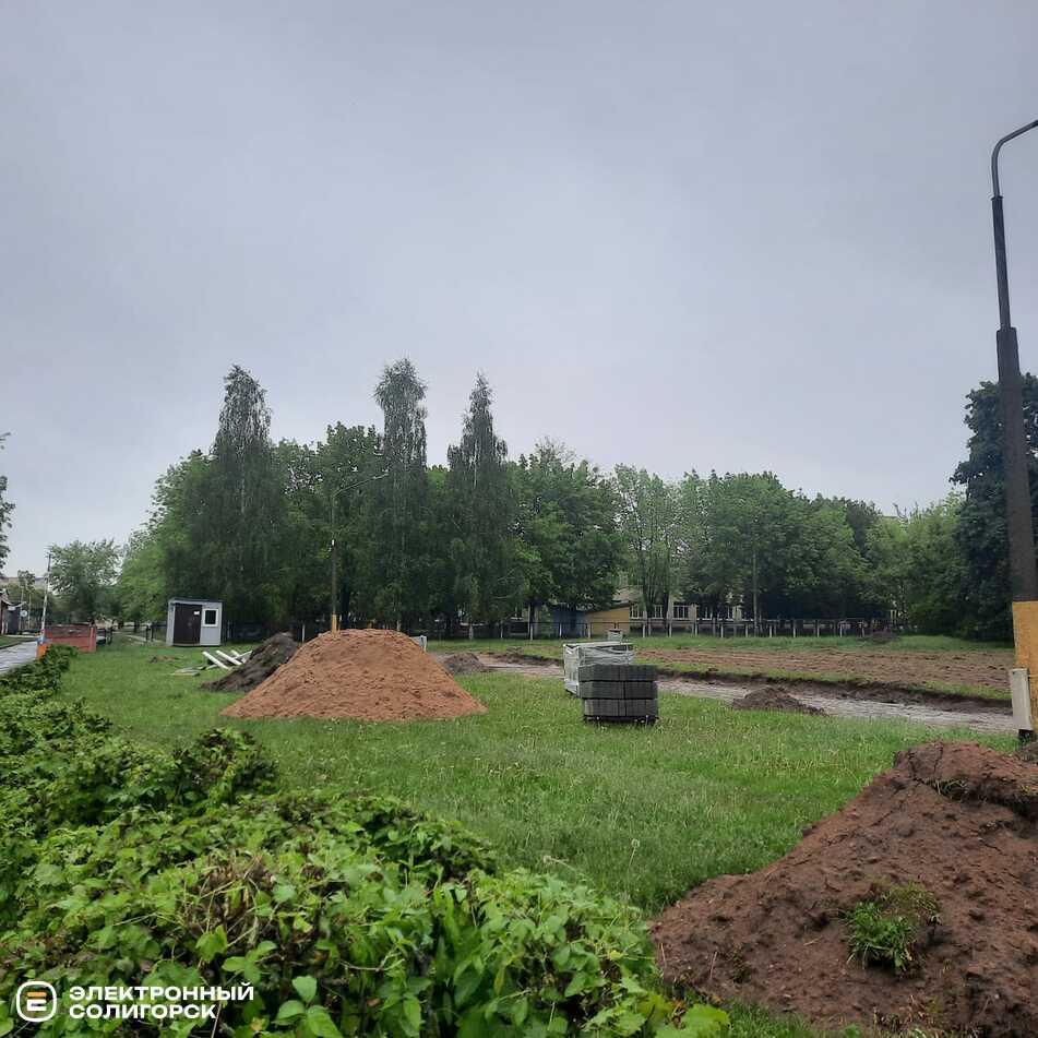 На территории стадиона школы № 4 начались работы по благоустройству.