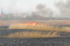 Сегодня в районе двух часов дня было зафиксировано значительное возгорание сухой растительности в районе гаражно-строительного кооператива, расположенного между улицами Коммунальной и Строителей. Пламя охватило траву в поле за гаражами и, благодаря сильному ветру, довольно быстро распространялось, охватив широкую площадь. Клубы дыма от пожара были хорошо заметны даже из города.