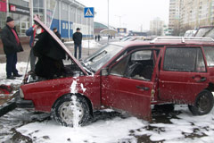 Сегодня, 11 февраля, в обеденное время около торгового центра "Галерея" в Солигорске загорелся автомобиль.