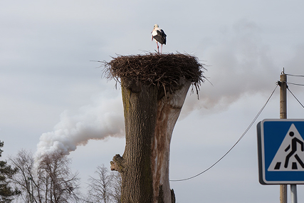 Один в гнезде: аист остался зимовать в Долгом и ждет помощи