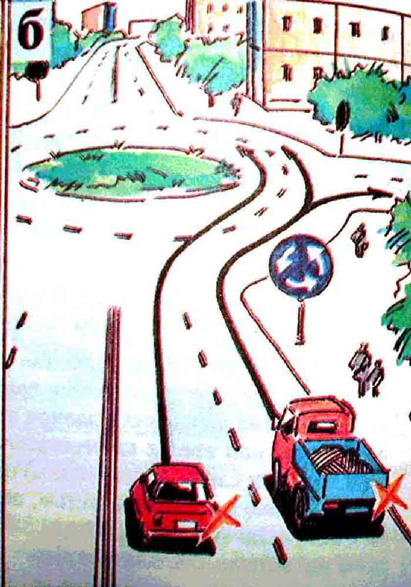Представим ситуёвину: вы на легковушке подъезжаете к кольцу и вам нужно двигаться прямо (второй съезд), а чудак на грузовике собирается ехать налево (3-й съезд), но почему-то намеревается проделать это по внешнему кольцу. Это нормально?