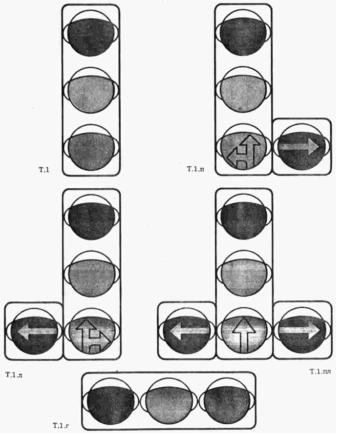 На поступивший Ваш вопрос поясняем, что согласно п. 40 Правил дорожного движения "Сигналы светофора, выполненные в виде стрелок красного, желтого и зеленого цветов, имеют то же значение, что и круглые сигналы соответствующего цвета. Движение осуществляется при включении разрешающего сигнала светофора только по направлениям, указываемым стрелками. Вместо красных, желтых и зеленых стрелок в том же значении могут использоваться круглые красные, желтые и зеленые сигналы с нанесенными на них черными контурными стрелками. Дополнительно сообщаем, что работы по оборудованию светофорных объектов дополнительными секциями на улично-дорожной сети г. Солигорска выполнялись до вступления в силу СТБ 1300-2014.