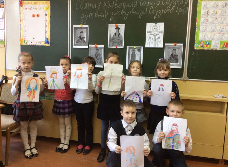 Руководитель молодежного православного братства святых Петра и Февронии Муромских при приходе кафедрального Христорождественского собора города Солигорска Виктор Бровушкин провел беседы с учащимися первых классов ГУО «Гимназия № 2 г. Солигорска» и воспитанниками ГУО «Солигорский социально-педагогический центр». Дети в рисунках постарались передать, как они представляют святую Софию Слуцкую. После проведения бесед детские работы были выставлены в названных учрежденях образования.