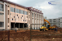 Продолжаются работы по возведению в центре Солигорска масштабного торгово-развлекательного центра. Строители занимаются установкой несущих конструкций и монтажом каркаса крыши будущего здания. Данный процесс зафиксировал фотокорреспондент "Электронного Солигорска".