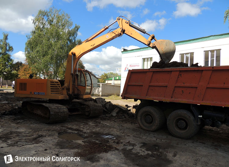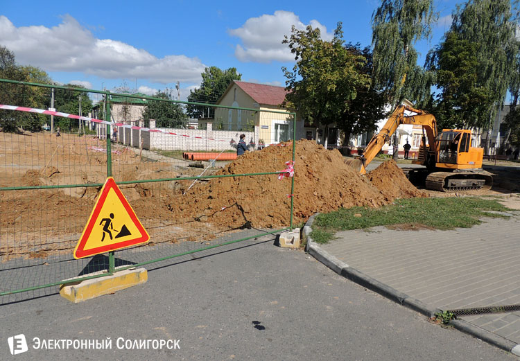 На улице Строителей (около военкомата) идут ремонтные работы.