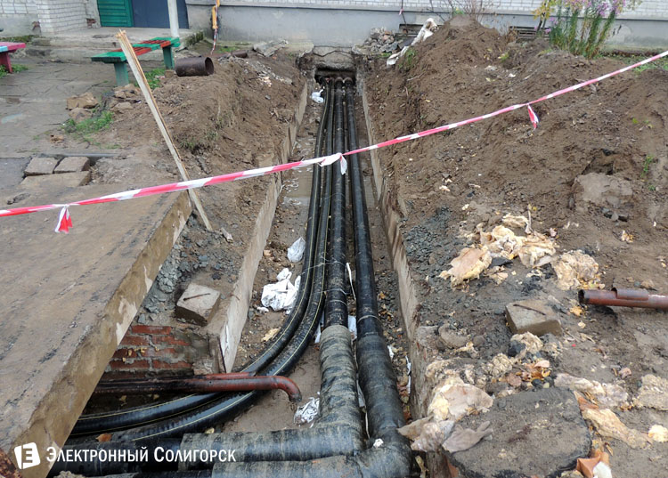Во дворе дома № 12 по улице Козлова корреспондентом "Электронного Солигорска" была обнаружена активная и масштабная работа по замене теплотрассы.