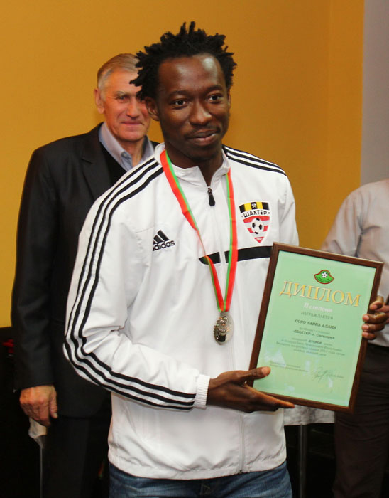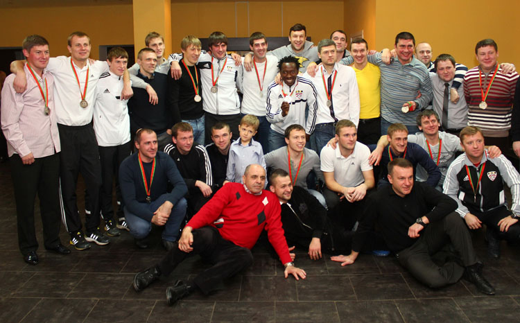 Заслуженные награды сразу после финиша первенства были вручены футболистам и тренерам солигорской команды.
