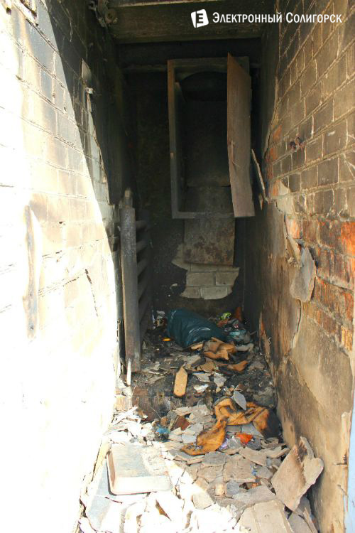 Выгорели подсобное помещение и мусропровод на уровне между первым и вторым этажами.