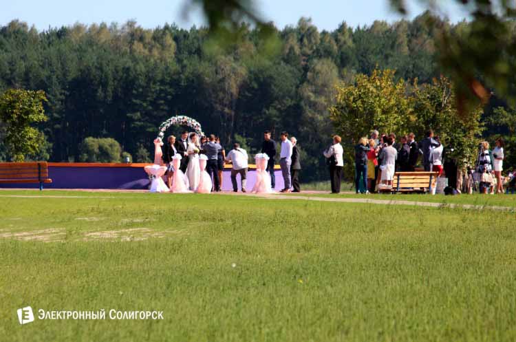 Праздники на берегу водоёма проходят, конечно же, не в прямом смысле этого слова - здесь не устраивают застолий и танцев. Зато у гостей есть прекрасная возможность неформально пообщаться с молодожёнами, сказать какие-то напутственные слова и пожелания. Здесь же можно провести отличную фотосессию - виды позволяют. Ну а потом - и в ресторан!