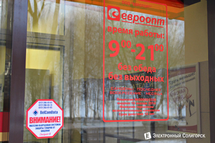 Работать данный магазин "Евороопт" будет 12 часов в сутки - с 9.00 до 21.00.