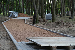 Фотофакт. В лесопарковой зоне Солигорска укладывают новую дорожку из тротуарной плитки