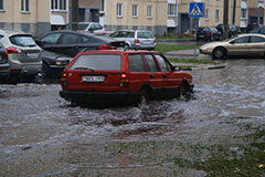 Фотофакт. Водные процедуры автомобилей на затопленном дождями участке улицы Строителей в Солигорске
