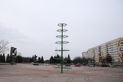 Фотофакт. На площади в Солигорске началась установка новогодней ёлки