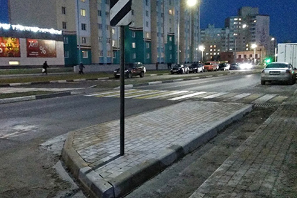 Фотофакт. Пешеходный переход на улице Судиловского оборудовали островками безопасности