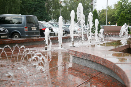 Фотофакт. Заработал обновлённый после ремонта фонтан возле административного здания стройтреста