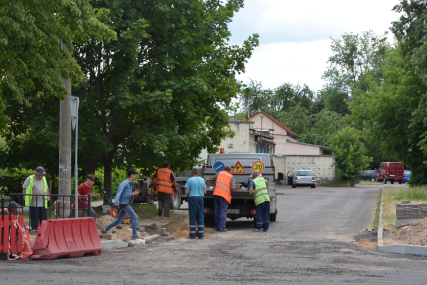 Продолжаются ремонтные работы на улице К. Заслонова (на участке от перекрёстка с улицей Л. Комсомола до перекрёстка с ул. Ленина).