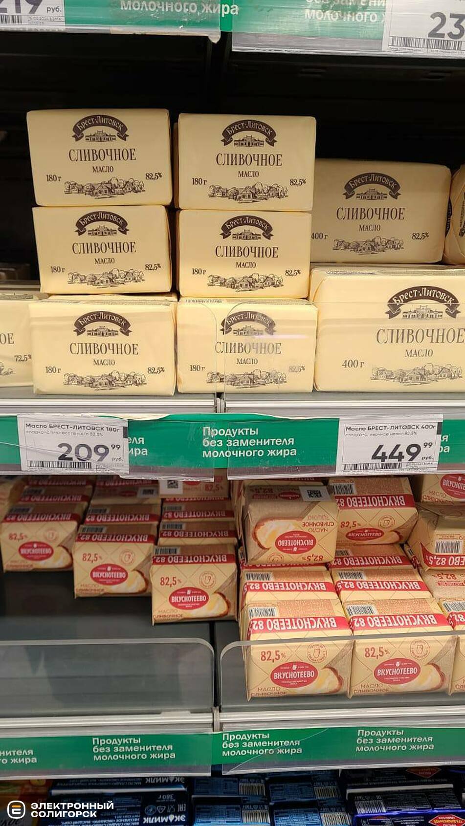 Масло сливочное – 200 рублей (7 BYN), сыры фасованные – 150–200 рублей (5.20–7 BYN).