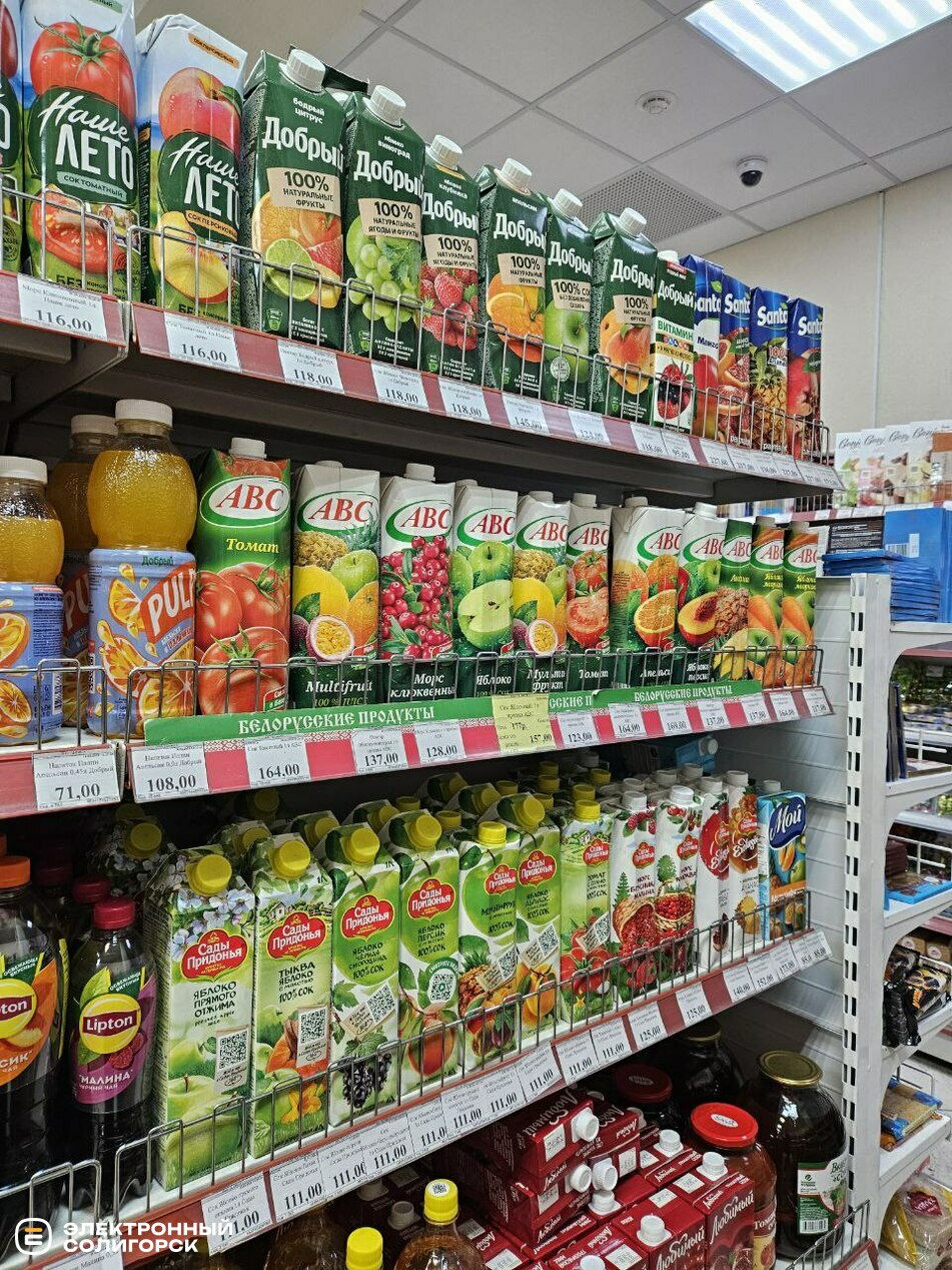 Соки – 111–164 рубля (3.87–5.73 BYN), шоколад – от 58 до 186 рублей (2–6.50 BYN).