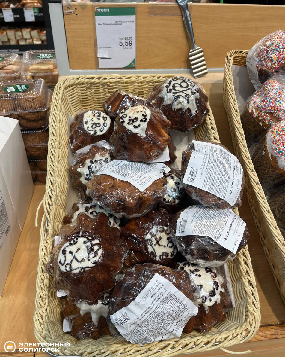 В преддверии праздника Пасхи прилавки хлебных отделов магазинов заставлены куличами и выпечкой на любой вкус: с творогом, посыпкой, клюквой, шоколадом, цукатами и пр.