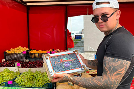 В 9 утра на рынке немноголюдно. На входе покупателей встречает жизнерадостный продавец с предложением купить у него черешню и голубику. Ягода крупная и сладкая, предлагает попробовать.