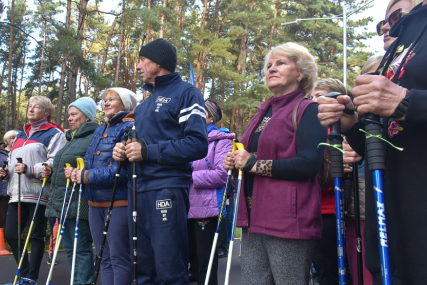Любители скандинавской ходьбы собрались на Тропе здоровья, чтобы сообща преодолеть марафонскую дистанцию.