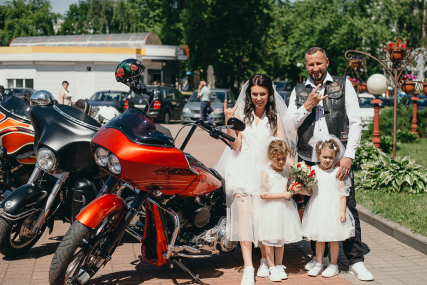 24 июня в жаркий полдень у ЗАГСа было очень шумно и многолюдно. Здесь проходила байкерская свадьба.