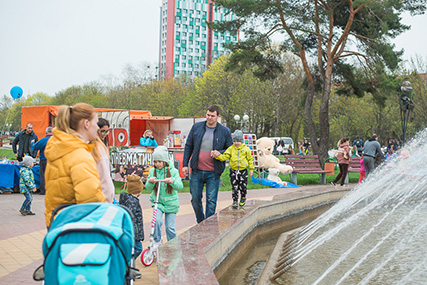 Весна выдалась прохладной, с переменчивой погодой и внезапными осадками в виде апрельского снега. Но вот столбик термометра поднялся, солнце пригрело и жители города отправились на прогулку. В прекрасный весенний день в сквере "Семьи. Любви. Верности" было многолюдно. Традиционно повышенным спросом пользовались спортивные площадки: скейт-парк (mini), уличные тренажёры, детский игровой комплекс "Курочка Ряба".
