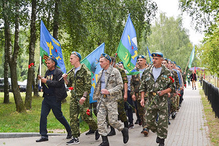 3 июля представители разных родов войск из Солигорска - десантники, воины-интернационалисты, моряки - провели спортивно-патриотическое мероприятие в оздоровительном лагере "Журавушка".