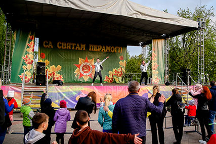 Главные вечерние события празднования в Солигорске Дня Победы традиционно развернулись на Центральной площади города.