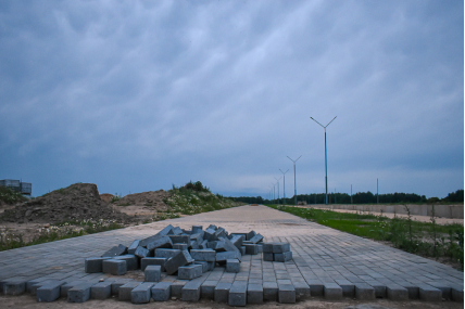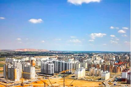 Строительство домов в новых микрорайонах продолжается. Стройка проходит активно.