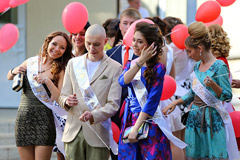 Перед тем, как идти на центральную площадь для участия в общегородском выпускном, все вчерашние одиннадцатиклассники собираются в своих школах, получают последний инструктаж, как себя вести на выпускном, и веселой нарядной колонной отправляются по улицам города к месту событий.