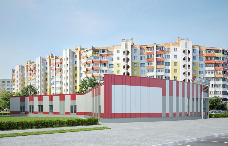 Впрочем, можете сами оценить предполагаемый новый внешний вид данной территории. Вот так должен будет выглядеть новый магазин "Фарммаркет-аптека", согласно проекту.
