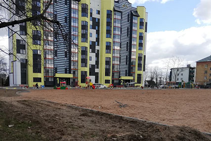 С другой стороны предложения от застройщиков не сыпятся, как звезды с неба в конце июля. Единичные новостройки постепенно растут в 4-х районах города, преображая архитектурную концепцию солигорских улиц. Об одной из таких новостроек сегодня и пойдет речь. Монолитный дом в самом центре города, расположенный по ул. Богомолова, в июне успешно сдан в эксплуатацию, внутренние работы завершены, осталось только довести до совершенства дворовую территорию.