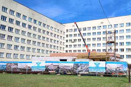 Во дворе больничного городка Солигорской ЦРБ продолжается строительство пристройки под размещение магнитно-резонансного томографа (МРТ). Подрядчиком работ выступает СУ-123 ОАО "Стройтрест № 3 Ордена Октябрьской революции".