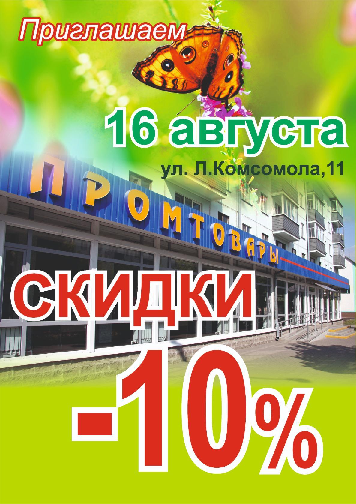 - весь август в магазине "Трикотаж" скидки до 45% на товары отдельных производителей.