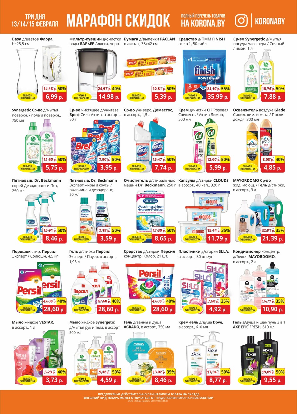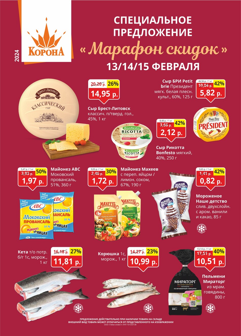 Три дня подряд в "Короне" ценопад! 13/14/15 февраля в магазинах сети любимая акция - "Марафон скидок"!