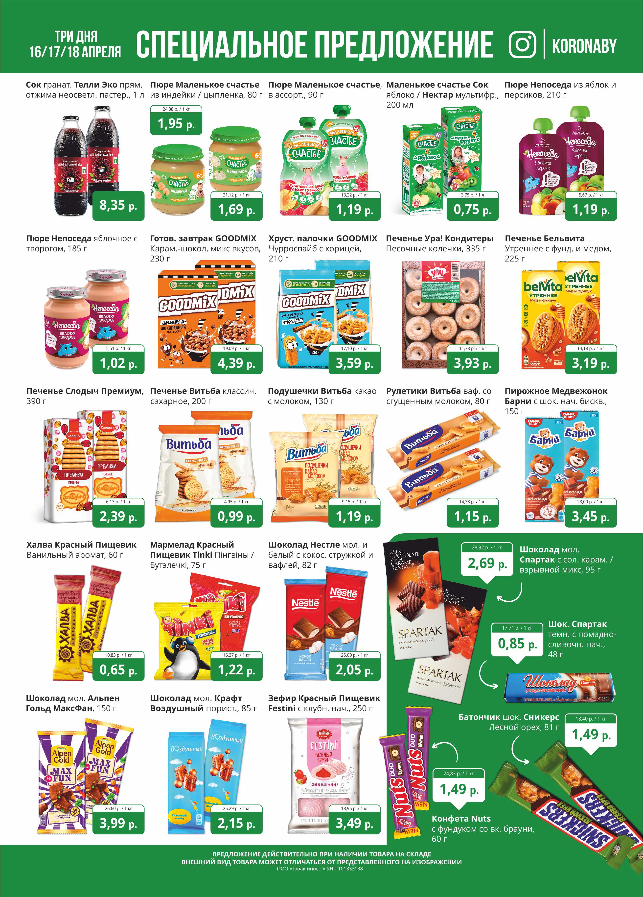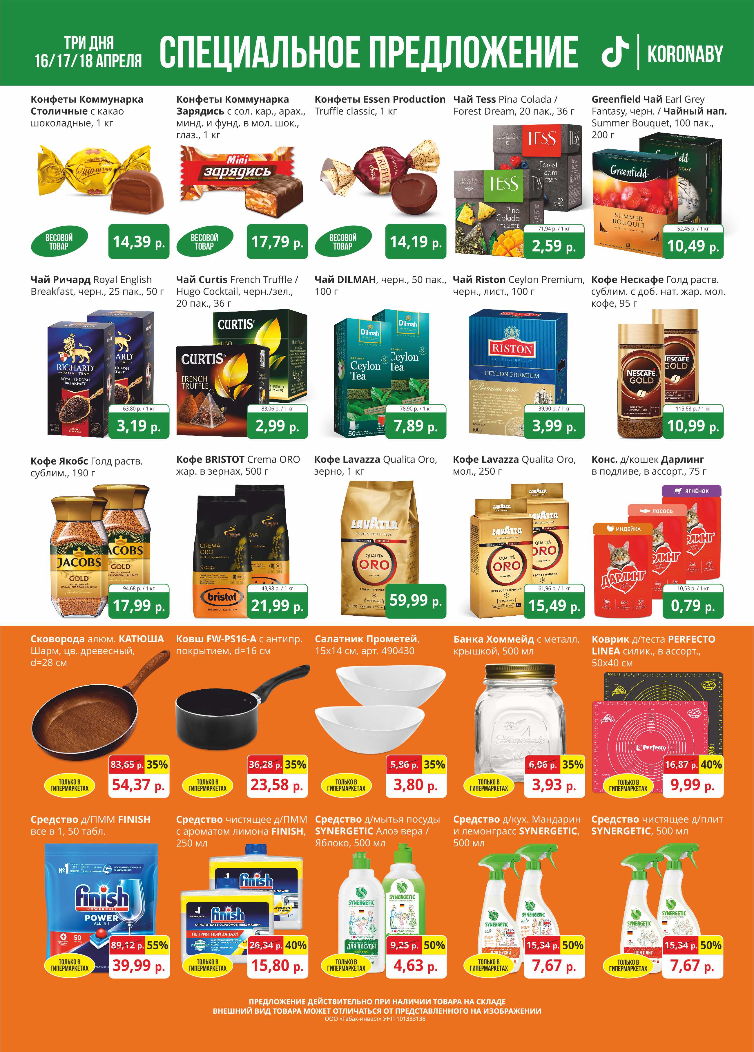 Весна в разгаре, а цены в ударе! 16/17/18 апреля в магазинах "Корона" любимая акция - "Марафон скидок"!