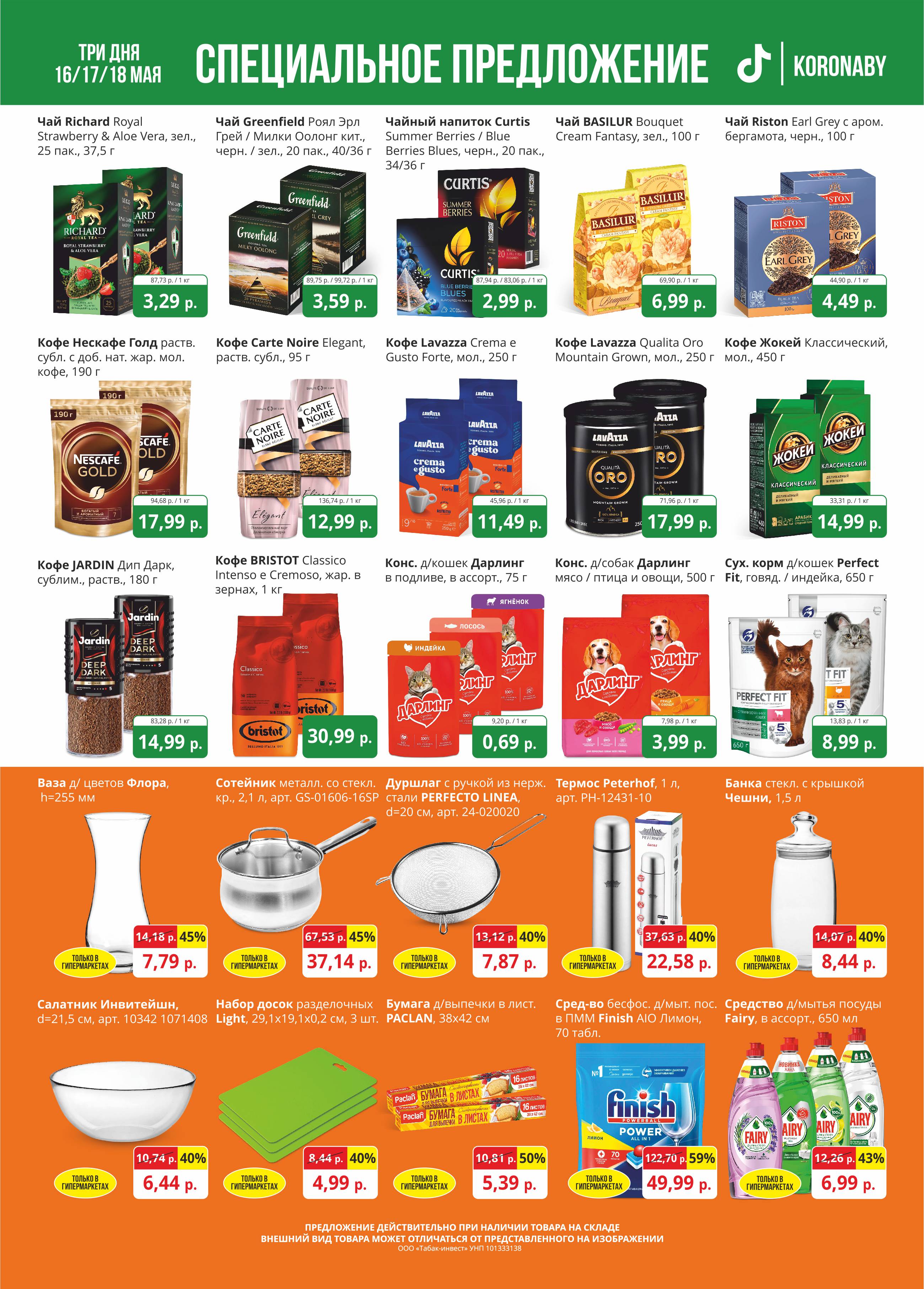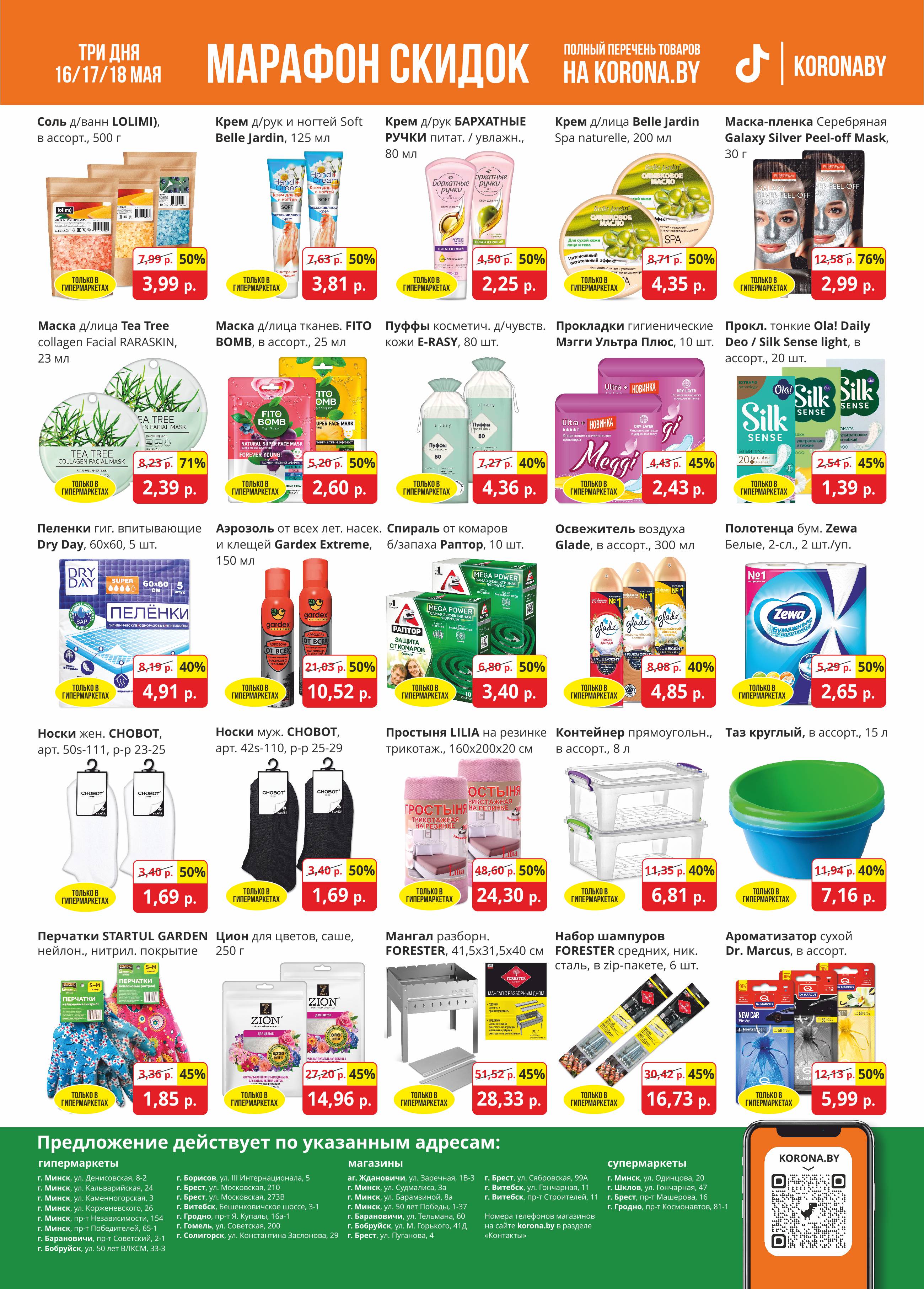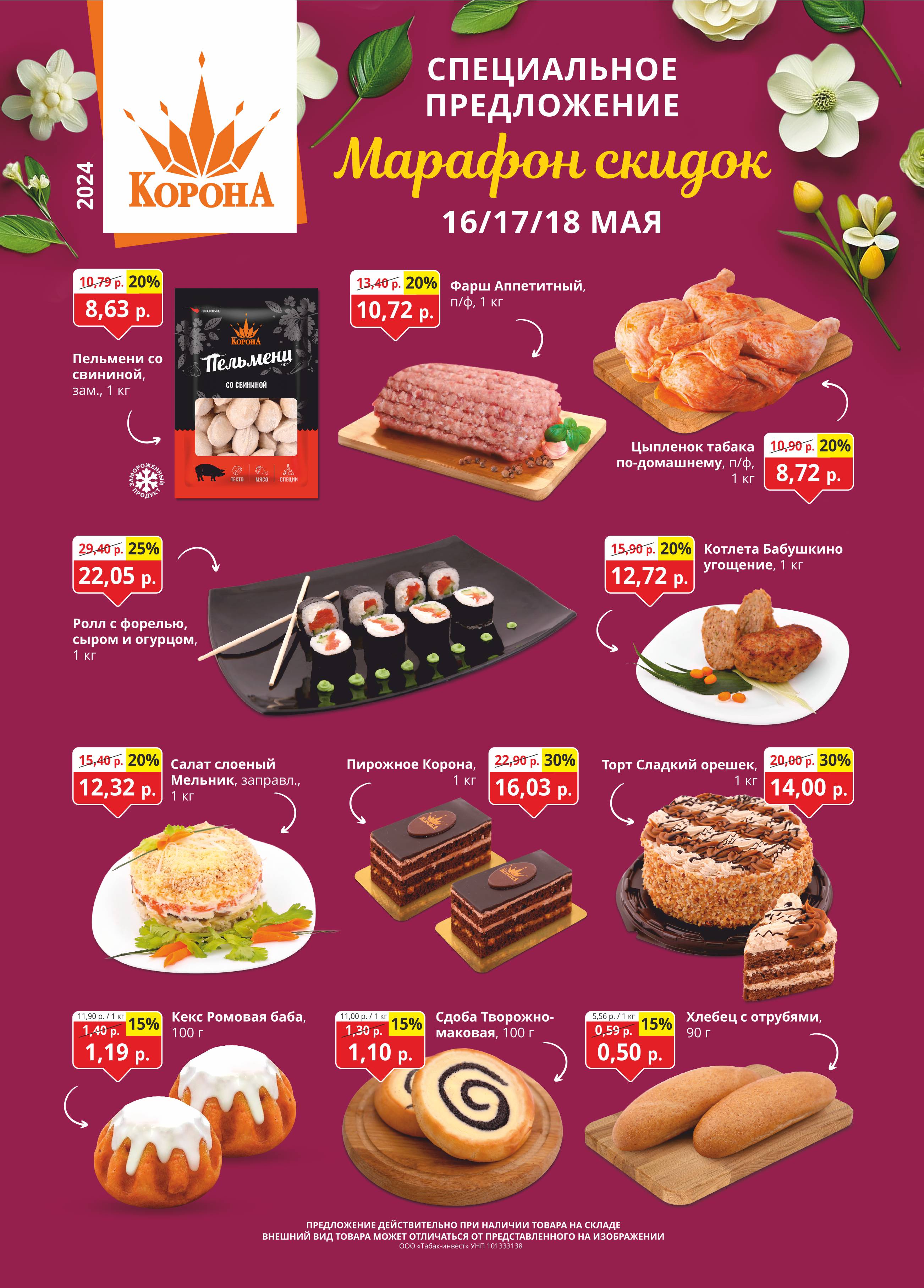 Когда погода не радует, "Корона" согревает скидками! 16/17/18 мая в магазинах сети любимая акция - "Марафон скидок"!