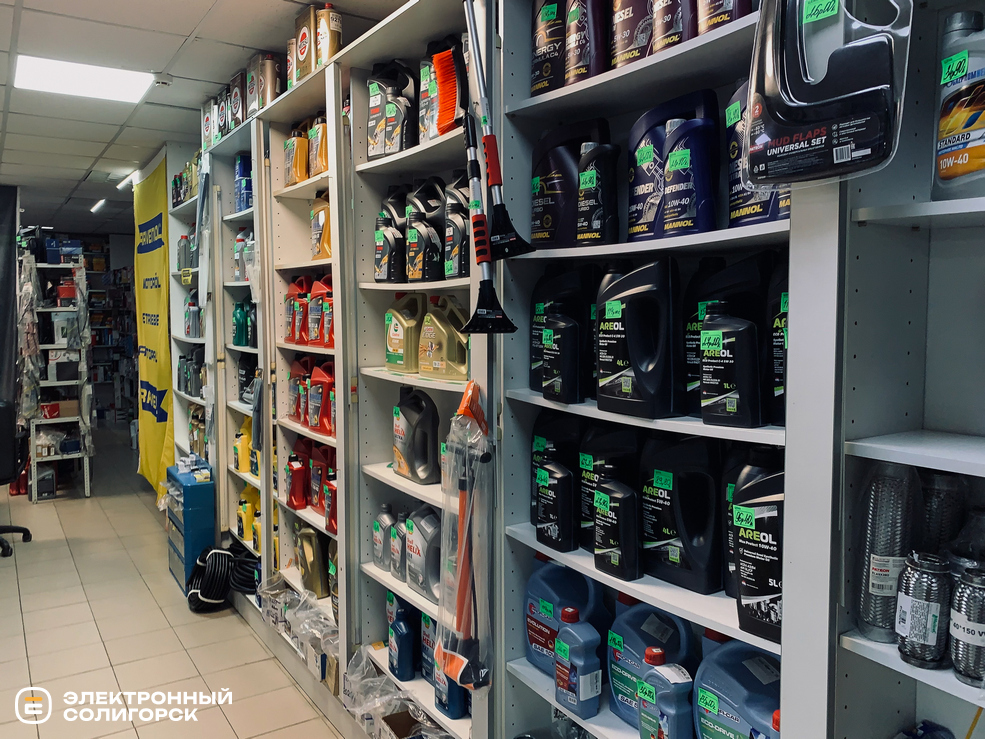 - 1000 наименований запчастей и расходных материалов, включая тормозные колодки и диски, фильтры, свечи зажигания, амортизаторы, аккумуляторы, комплектующие для ГРМ, крепёжные элементы и масла;