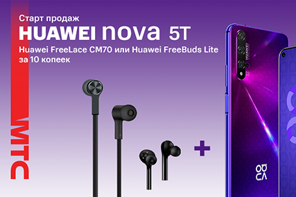 В сети салонов и интернет-магазине МТС стартовали продажи смартфона Huawei Nova 5T 6/128 Гб. Первые покупатели новинки могут дополнительно приобрести беспроводные наушники всего за 10 копеек.