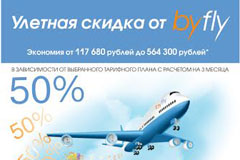 Подключите высокоскоростной Интернет от byfly на тарифных планах линеек «Домосед» или «Рекорд» и пользуйтесь услугами целый год за полцены!