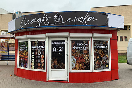 Итак, торговый павильон "Сладкоежка" привлекает внимание своими аппетитными фотографиями в окнах, поэтому вам не составит труда его опознать, когда впервые отправитесь туда за покупками.