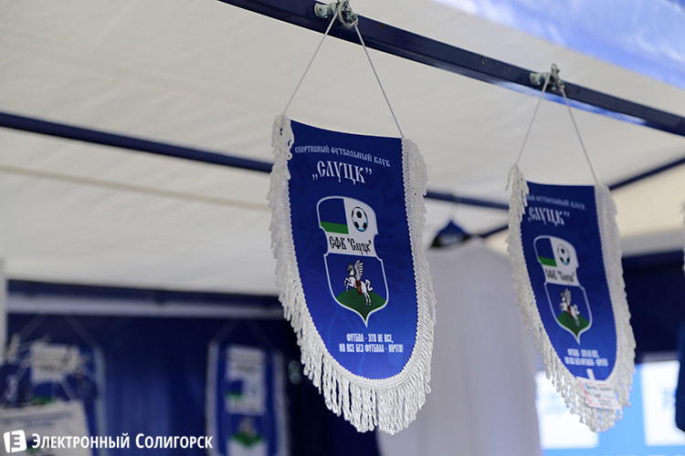 За оградой стадиона была замечена палатка, где был представлен довольно широкий ассортимент мерчендайза слуцкой команды, продаваемый вперемешку с прохладительными напитками, чипсами и мороженым.