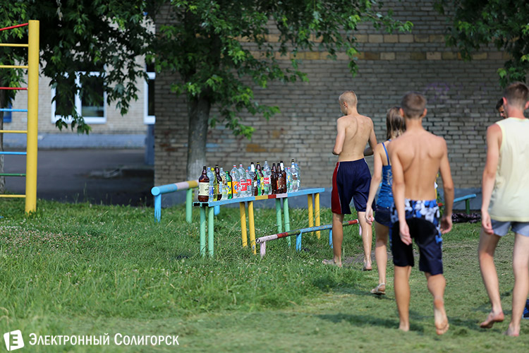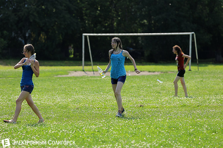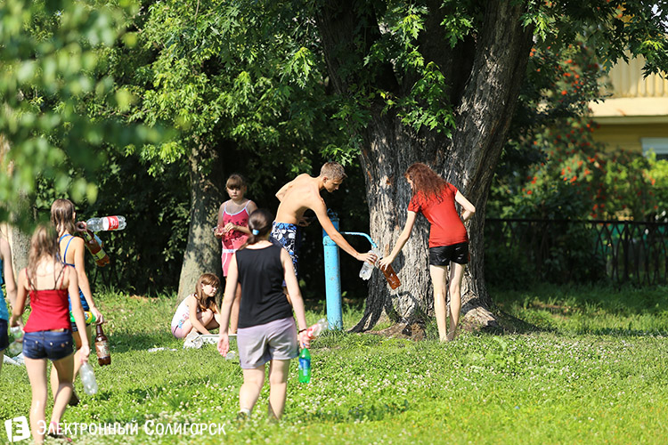 Слуцкие подростки решили спастись от июльской жары в игровой форме. Двое друзей Никита и Егор решили организовать водные бои, пригласив поучаствовать через интернет-паблики всех желающих. В итоге на стадионе слуцкой СШ №6 собралось 9 человек - не так уж много, но и не так уж мало. Корреспонденты "Электронного Солигорска", заглянувшие 18 июля в Слуцк ради футбольного матча, скоротали время, понаблюдав за азартными водными забавами подростков.